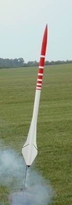 Motor chuffed hard and kicked the rocket about half way up the rod. Slid back down and then the motor lit. Fast and high. Lost sight after burnout. Heard ejection but never saw it. Found it at the edge of the field. Chute stripped, no damage.