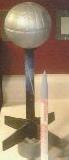 Single-stage rocket; features styrofoam Death Star in place of traditional nose cone. Fits over top of tube in four pieces, each equipped with a separate recovery ribbon. Body of rocket uses parachute recovery. At apogee Death Star "explodes" and pieces float to the ground.