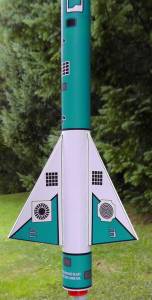 I would like to give this model kit Four-and-a-half out of five stars. Although the decals can be challenging, it is certianly worth the effort because the finished product is excellent.  High marks go out to Quazar One for telling the truth in the specs. Even when finished completely, my rocket was a few grams less than stated, even with an added balsa bulkhead and an ejection baffle.