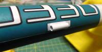 Another caution to observe: The decal sheet had tiny numbers (part numbers or whatever) that are not to be used on the rocket. Cut these off before dunking in water. I didn't, and the tiny numbers floated off into the water (they had no clear backing) and some of them ended up on the rocket as tiny specks of 'dirt'. It took quite a while to pick them off one-by-one.