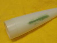 Unfortunately the body tube was so long that it was bent in shipping. Apogee Components did not pack it well. A replacement was sent - also bent. I sent specific instructions to Apogee concerning the packing of the last remaining replacement tube, but they ignored it and I received a tube packed so that it was pretty much a guarantee it would be bent also: Each long end of the tube was reinforced, leaving a few inches of the middle of the tube open to absorb all the stresses from shipping. The very densly packed paper filling left no room for give and transmitted the handling forces directly to the tube middle. Apogee then apologized that they had no more tubes to send. Tim V. wrote back essentially saying "too bad, it happens, there is no practical solution". (A very taboo statement from an engineer!) If Timmy would have ever ordered a large print from Shutterfly he would see how it can be done! But I digress.