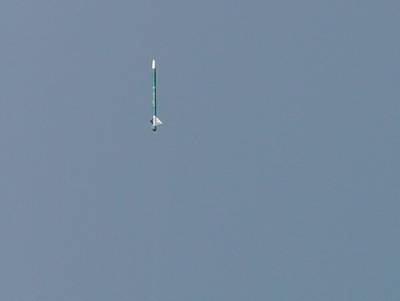This rocket flies very well, even in somewhat stronger winds. Using the smallest C11 motors, it accelerated at about 5 Gs, enough to fly straight up and reach 60-80 mph. A 5 second delay was about perfect for this model.  On the C, it will only reach about 200-300 feet. The same should be true of an 18mm C6 motor, perhaps a bit more speed and altitude, but I haven't tried them yet.