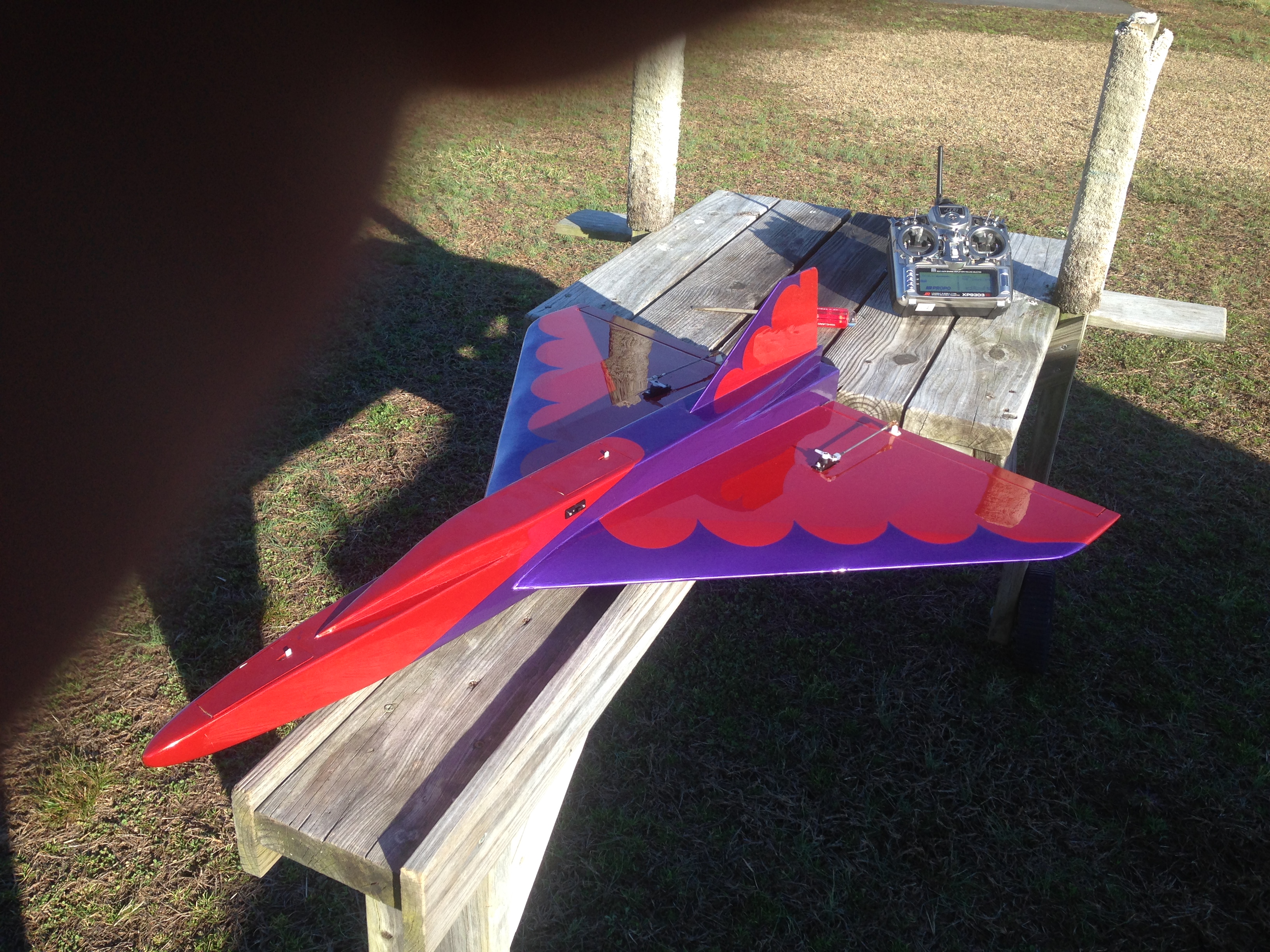 This is a rocket plane that uses a 29 mm engine. The kit is made by a company from New York called R & R model aircraft and called a Delta Star. It has a 32” wing span and can be framed up in 1 afternoon. Uses 2 micro servos, 1 receiver and 1 battery pack for the radio. I planning to use a JR 9303 transmitter so I can mix as needed.