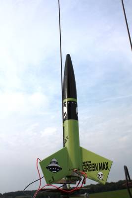 EDIT: We regret to inform that Der Green Max was last reported somewhere over the carrot fields of Potter, NY.  After boosting under three B6-6 motors, it was allegedly abducted by aliens - probably to study motor clustering technology.