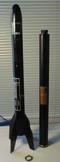 Brief: Big Bertha modified for rear ejection. Modifications: This is a Big Bertha modified so that the motor tube extends nearly the length of the body, and acts as a piston upon ejection. Recovery is nose first, making the rocket appear to be coming in upside down. I call it Ahtreb, which is ...
