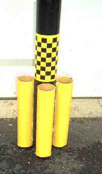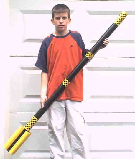 My name is Eric Spain and I live in Rhode Island.I have been involved with rocketry for 2 years and I love it! My Descon #9 entry is called the Black Widow. My rocket is 6 feet tall and 2 inch diameter. The coupler is the same type of tube as the body tube and is located in the middle. It is black with yellow/black Monokote. The nose cone is a piece of balsa that I made on a drill press. It has a 29 mm mount and was first flown on a F-22. It has 4 9 inch long 1.5 inch diameter tubes that were cut from Estes Mean Machine Body Tubes and were painted yellow.It gives the rocket a nice Sci-Fi look. The body tubes were fiberglassed, sanded, and painted.