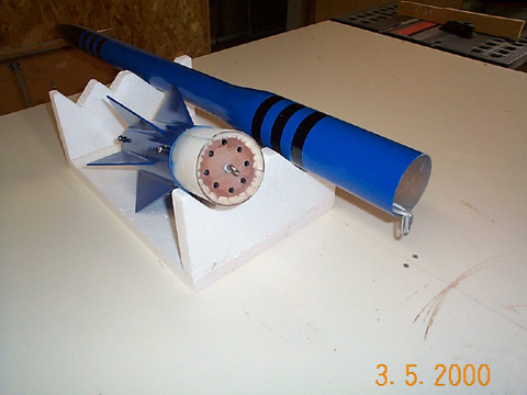 The Blue Blade 3X's next flight was at the Three Oaks launch in November 1999. Bruce Kirchner graciously loaned me his 29mm-240 RMS for this attempt. Red Arrow was out of my motor of choice, an H128w, so I went with an H238t. Luckily I had brought my set of simulations with more than the H128 and was confident of the motor selection.