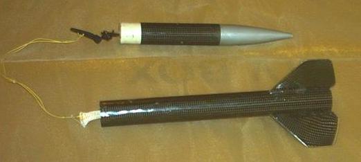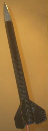 Rocket PicThis carbon composite 29mm minimum diameter rocket is the second of three versions intended for NAR mid-power altitude competition events. Specifically, this version is ito be used to break the NAR class C (adult) G power altitude record (1140 m = 3740’).