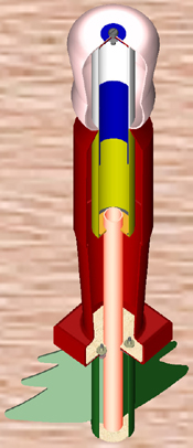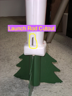 7. Body Bottom Launch Rod Clearance: Insert a piece of 1/4" rod in the launch lug attached to the rear fin until it touches the bottom of the Toy Soldier. Mark the outline of the rod on the Toy Soldier bottom. Cut out the plastic for clearance around this mark.