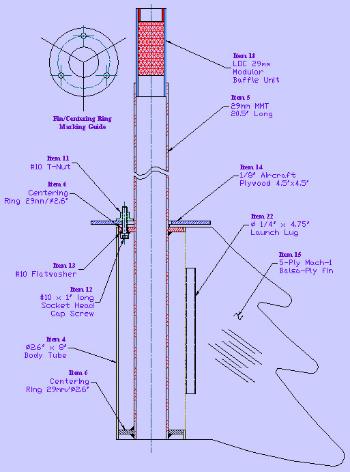 14. If you will be using a positive motor retention system, make provisions in the rear Centering Ring (Item 6) but do not glue the bottom CR at this time! (That will be done in the final step.
