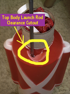 8. Top Body Launch Rod Clearance: Now from the top of the body, sight the opening in the bottom and create a cutout at the top for the launch rod as seen in Figure B.