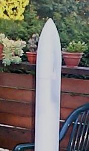 My rocket was inspired by an Estes Sliver. I planned to upscale it using a 3" mailing tube for the body. 1/8" balsa fins and a custom turned balsa nose cone and install a 38 mm motor mount to take advantage of the 38 mm G's available during the 29 mm engine drought. The fins will be overlayed with 3/4 oz fiberglass and epoxy resin.