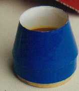 G-whiz Construction: Fin and Motor Mount Assembly (1) Begin by preparing individual parts. From the two 2.14" o.d. couplers cut three pieces: 1/2", 3" and 4" long (to match prototype; the 4" piece could just as easily be full 6"). Epoxy the two 1.14" centering rings flush with one end of the 1/2" and 3" pieces, working epoxy into the end layers of the coupler as you do so. Refer to the pattern layout and cut out pieces as follows: Three fins from your chosen material; three pylon cores and three fairing cores from balsa or plywood stock at least as thick as the fin; six pylon shells and six fairing shells from 1/16" plywood. Stack all six pylon shells, clamp together, and drill the two holes shown on the pattern, using a 1/16" drill. The 2mm screws will thread through these but not slide through. Assemble the three fairings and the three pylons using 5 min. epoxy, yellow glue, or C/A. I used yellow glue and clamped each set between two blocks of wood until dry. If you glass the pylon shells, you will need to assemble them with epoxy. Mark the main booster tube for three fins. Make an additional mark clockwise from each mark by the thickness of the assembled pylons. Mark 1" and 3.75" from the aft end of the tube. Using the metal angle as a guide/ruler and a very sharp hobby knife, cut the three slots, which will each be 2.75" long, either 3/16" or 1/4" wide, and 1" from the aft end. Clean up the edges of the cut slots, especially inside. Following steps will be easiest if each pylon fits just snugly enough in a slot to hold its place while you work. |