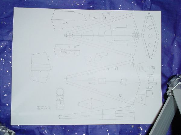 I have been planning for some time to convert a Puzz3D to a launchable rocket and had even started converting an Imperial Star Destroyer to fly on 3 24mm motors at one time. Downscaling the puzzle meant dividing all of the measurements by 6. This turned out to be a moderately easy paper shroud build. I started by cutting out the top and bottom hull shrouds, then folding and gluing them together to form the basic shape. I then cut from 1/16th inch balsa a center spine and glued it and a crossing member into the shroud hull. I then cut out rear hull from paper and measured for the three engine tubes. These were glued between to pieces of 1/16th inch balsa that fit the shape of the hull rear and slid into the rear of the other piece of the hull in the slot cut in the center spine.