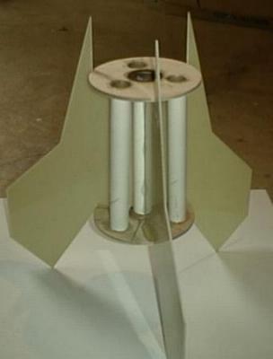 Below are the makings for the new motor mount. When finished it will be 1-29mm and 3-24mm. Notice how the 24mm are angled. These are aligned to have thrust in line with Center of Gravity. (I read about this canting in some publication)