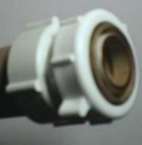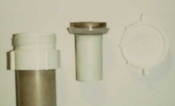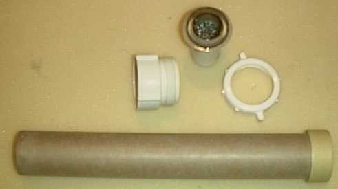The removable baffle unit was constructed using plastic plumbing components. The diameter of the 38mm tube was much too small to securely fit inside the plastic plumbing collar so I wrapped it with tape until it fit in loosely. Then using liberal amounts of epoxy I glued the motor tube in place. I then epoxied the plastic ferrule to the LOC baffle so that it slid inside of the 38mm tube and so that it was above the collar-nut. The pictures tell the story better.