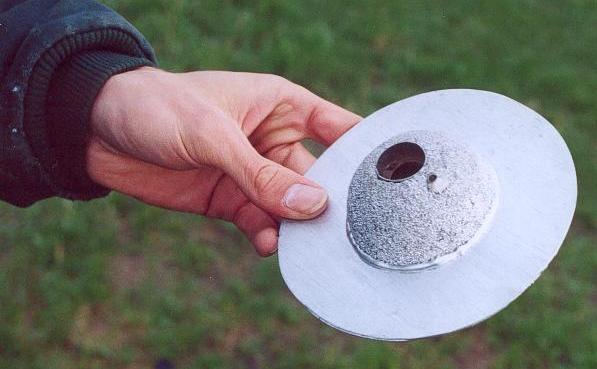 The first time I saw a rocket powered saucer, I was instantly in love. I had to make one of my own. I believe the saucer I saw was a kit, it was really cool, but I wanted something a little different looking. I figured mine should look like a classic sci-fi saucer. I decided it should look like it was crafted out of metal, because that's what UFO's are made of, right? O.K. I knew what I wanted and had an idea in my head how it was to look, now to make it a reality.