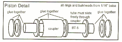 Glue one end of the piston to the BT-5 tube. Insert it through the BT-55 coupler you built above, and make sure it slides easily.