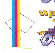 Colorbar from WP business card print jobFins can be 1/32" balsa or basswood, or index card stock, hardened after installation by soaking all edges with thin CA. My first two Pokers used some paper-thin hardwood I salvaged from a cabinet-shop dumpster.  Poker III has fins made of folded glossy card stock from the color-check bands along one edge of a business-card print job (right).