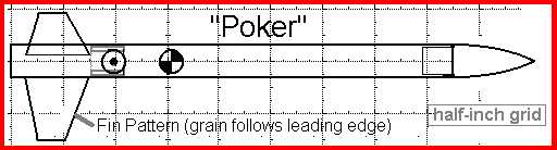 plan of Poker rocket for Quest Micro MaxxThe "Poker" rocket ...is a simple 3FNC model whose claim to distinction is that every single part is made from scratch, with the sole exception of the shock cord, which is 6" of Apogee's or ASP's small Kevlar® cord.