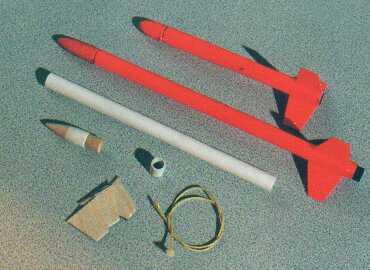 Paint: Poker got a couple of coats of sandable white primer followed by fluorescent red, which reminded me of a red-hot fireplace poker and gave the rocket its name. The final detail is a streamer, 1/2" x 4", made in this case of crepe paper, taped to the Kevlar® cord about an inch below the nose cone.