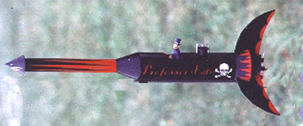 For my Descon entry I'm entering my version of Professor Fates land speeder. I did have to take a few liberties to get a model that would fly. I first had to remove the railroad undercarriage. Then I added the fins. The shape of the fins come from another of Professor Fates infernal devices. His sonic torpedo. I made the body longer, also to help the stability.