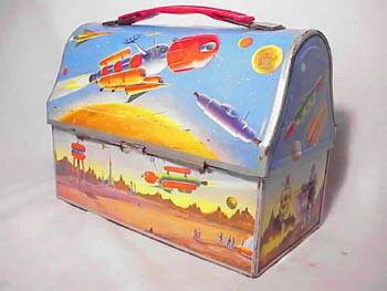 I have always been fascinated by 1950's era sci-fi space vehicles. The more inexplicably complex, the better. An excellent example is the lunch box I carried to school in the first grade.