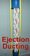 After toying with an idea for ducted ejection ala the Estes Trident for some time, I built a test vehicle in 2001. The two body tubes were connected by faucet connector hoses which ducted ejection gases from the lower motor section to the upper recovery section. The prototype used 2.6" gift wrap tubing, industrial grade toilet paper cores and corrugated cardboard centering rings. The airframe was completely fiberglassed. As it started coming together, I decided I liked it so much that I was already thinking about scaling it up. I named it the Protonator I. It has flown about 10 times on a variety of G and H impulse motors.