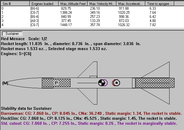 flight. RockSim predicts an altitude of 830 ft on a B6-6 and 1390 ft on a
