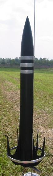 I painted the rocket black, created three silver rings of paint at the top of the rocket.