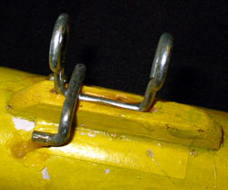 balsa blocks on the rocket, with the peg board hooks resting on the surface of