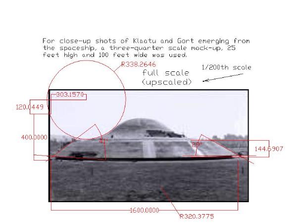 After taking the image from http://www.tauspace.freeserve.co.uk/day_the_earth_04.htm and dumping it into AutoCAD I was able to scale it from three quarters up to full size, then I took and matched the radiuses and angles. Notice that there are parts that don't match due to the camera being at an angle.