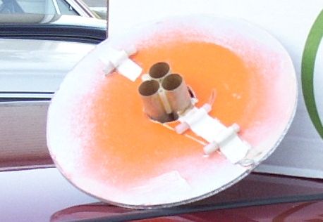 ok, get everything set up, crack the glow sticks and install. seem a little dim but we'll work that out later. borrow battery, fudge electrical hookup and other last minute mayhem. then wait to get dark to launch.