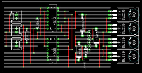I could have used a computer controlled electronics. But I wanted you be able to build the machine without that. Here is a simple electronics that do the work.