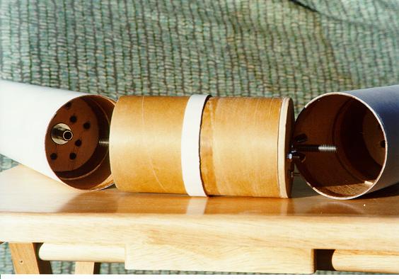 The altimeter bay is not a weak link in the airframe. It is held in place with all-thread rod and sandwiched between coupler rings and perforated bulkheads. This is done by assembling the altimeter bay, coupler rings and perforated bulkheads as a unit which positions them properly for bonding. With a 1/2 inch ring of BT bonded to the midline of the AB and the all-thread rod extending 1" beyond each end, 1" rings of coupler material are sandwiched between the AB bulkheads and the perforated bulkheads. The perforated bulkheads have 1"long coupler nuts bonded into them. Epoxy is then applied to the inside of the airframe segments which bonds -only- the perforated bulkheads and coupler rings. When dry, the AB is twisted and unscrews from the airframe.