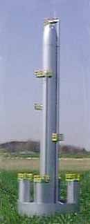For motivation, imagine that hydrocarbon seas need to be refined on Titan, and we're assembling the refinery on orbit, in large pieces, and sending it directly to Saturn, using temporarily inserted solid rocket motors. Or imagine a debutanizing tower has decided to try to launch itself into the Gulf of Mexico (despite appearances, they make rather poor rockets. Or build it because you've never built a tube fin and ring rocket before. Or build it because this is the one rocket that looks realistic with a red and gray primer finish. Or build it because you'll be practically guaranteed to be the only one at the next launch with a flying refinery!