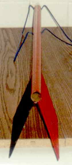 The next weekend was our club's big meet. After I'd gotten all my competition flights in, I prepped TFNK and brought it to the safety check-in. The SCO said, "You can't fly a rocket with only two fins!" "But it swing tests stable, and it's had a safe flight before." I argued. "A rocket can't be stable without at least three fins!" he said. I reminded him that some aerodynamic experts had insisted that the WAC-Corporal couldn't be stable because it didn't have four fins, until someone pointed out that arrows are stable with only three feathers. (Handbook of Model Rocketry, 6th ed. p. 154) I heard another old-timer mutter, "Not on MY field!" (Which it wasn't.) and "Not in this lifetime!"