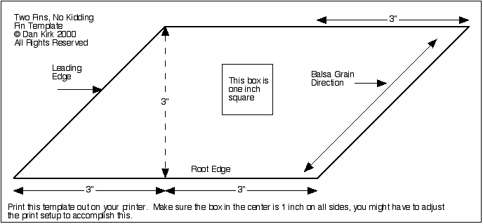 • Fins: 3/32" Balsa, trapezoidal Root chord: 6" Tip chord: 6" Span: 3" Sweep: 3"