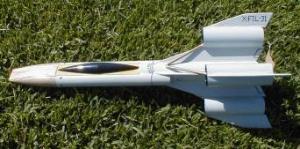 The X-File is a single pilot fighter-interceptor. A squadron of 10 X-Files are typically carried on board Excaliber class star cruisers. They are typically used as scouts or escorts for shuttles. Their primary purpose is coordinated defense of the mother ship at extended ranges. Vessels that are designed to operate in space do not need aerodynamic features, but the X-File was originally envisioned to extend operation into planetary atmospheres. The X-File, therefore, has aerodynamic fins and body. No provision was made for landing gear however, but emergency chutes will deploy if the rocket is forced to make a tail first landing on a planet. Ten years of operational deployments have only led to three instances when the planetary emergency landing system was necessary, and it performed flawlessly in each case with safe recovery of the pilot. The name X-File is really a nickname based on the official Space Command designation of X-FIL with a hull number. The X signifies the x-wing configuration. The FI signifies the fighter/interceptor role. The L signifies the primary weapon, which was originally a directed energy laser, but has since expanded to include photon torpedoes and grenades. Thus, most X-Files are really X-FIP's, but the original nickname has stuck, and most Space Command personnel unofficially call these vessels the X-File. The hull number of the rocket modeled is X-FIL-31; which is one of the few remaining rockets not configured to carry photon torpedoes.