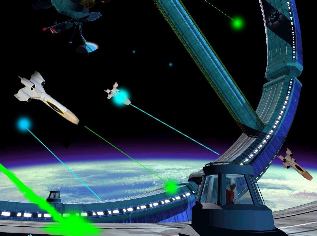 X-File Squadron in battle over Phobos... They have a maximum endurance of six hours at optimal acceleration speed, and a maximum speed of 0.9 warp for two ten minute bursts if needed. Weapons loads typically include 2 photon torpedoes, a single directed energy "gun" (mounted underbody and aimed by steering the entire vessel), and a self-defense photon grenade launcher, which ejects small photon grenades into the wake of the X-File. The impulse engine is located in the aft main body, and the four anti-matter engine nacelles are used for the near warp speed bursts only. The impulse engine is an advanced design that provides power for propulsion as well as life support, weapons, and the anti-matter control & containment fields. A small anti-matter containment field is maintained in the forward portion of the engine section, and anti-matter is ported to the nacelles via small diameter pipes when "afterburner" (to borrow a term from ancient earthbound days) is needed. Since anti-matter is contained and controlled with magnetic fields, rather than physical boundaries, the boost nacelles appear to be nothing more than hollow tubes. In actuality, there are powerful magnetic fields in each nacelle controlling and porting the anti-matter/matter reaction to provide the near-warp burst capability for the X-file. Maneuver/steering is accomplished with small chemical impulse jets in the bow and stern. Navigation is not complex, as the X-File cannot stray further than 3 hours cruise distance from the mother ship. Communication is strictly line-of-sight in the GHF frequency range. Pilot ingress/egress is accomplished via a small hatch on the side of the fuselage with airlock latches mated to the mother ship.