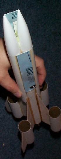 3. Spray several coats of Krylon gloss pewter grey over the whole rocket.