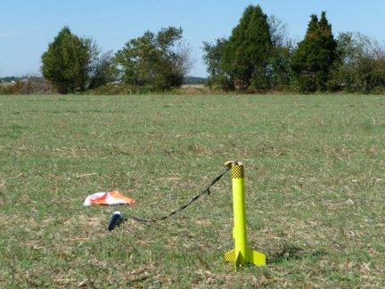 There was a short delay and then it ripped off the pad with some yellow flame but no noticeable smoke. Ejection was a bit late but, with the stuck landing (see photo), this flight got a perfect 10.0.