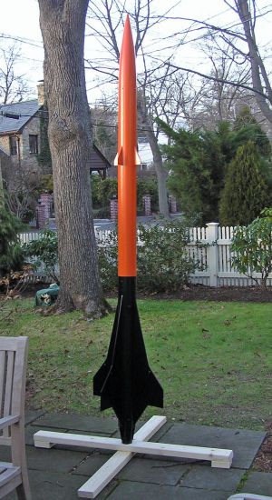 The rocket finished like any other high power rocket. I spent a rather long time filling, priming, and sanding this rocket. After I spent several weeks prepping the rocket, I painted it orange and black with Krylon paint. I did not use the included vinyl decals.