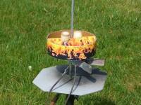 My big launch of the day was the MEGA MOSQUITO with a D12-3 motor manufactured in 1979. I was expecting a big boom but the engine gave a good boost. At ejection the elastic shock cord broke, the nose cone and chute drifted away. The tube end sufferer a good dent when it hit the grass ... [More]