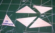 zooch_discoverer-thor_fin-prepSince I was not yet ready to go to bed, I decided to cut out the fins and try to seal them. All that is provided is a sheet of balsa and a template to cut out. SInce the fins are simple right triangles, this did not pose too much of a problem. I cut out the template, traced the outline onto the balsa with a pencil and cut them out with a razor knife. The template thoughtfully included a little arrow to make sure I get the grain in the right direction.