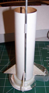 Two centering rings are provided. One of them has a notch for the motor hook. I decided to cut a small notch in to forward one as well to accomdate some a Kevlar® noose. The kit comes with an Estes style trifold mount which I have come to distrust and despise. After cutting the notch, it was a simple matter to slip the rings to the designated spacing and glue them in place. I will note that the forward ring, the one I cut a notch in, seemed just about right. The aft ring was very loose. After gluing the rings in place, I set aside this assembly to dry for a while.