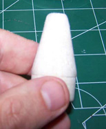 zooch_discoverer-thor_nocseconeThe second new thing was actually shaping the tip of the nose cone. The directions state that if it had been done at the factory, it would have resulted in a mess as the blades chewed the thing up. That meant that I was supposed to sand it to the right shape. That involved sanding the cylendrical tip into a spherical tip which should be well within the skill set of a decent rocketeer. Needless to say, it was not in my skill set. I used a sanding board and rotated the NC as I tried to remove material evenly around it. It turned out better than I had expectedbut not as well I had hoped. For me, doing it by eye was hard.