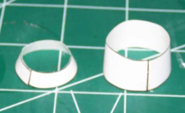 The actual build commences with the motor mount. A cut is made in the motor tube to accomodate the placing of a motor retension hook. I then found something new to me. I was instructed to cut the "reinforcement band" out of the wrap sheet and glue it around the motor tube just below the cut for the hook. Apparently, this is to help resist any tearing that the hook would cause during ejection. If this works out, I may well adopt it as a modification on future rockets.