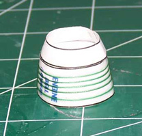 zooch_discoverer-thor_nozzle1The building of the rocket nozzle is the final part of the assembly. The instruction say that this is an optional step, basically because it is a pain in the backside. It was. The nozzle starts out by cutting out the two wrap around pieces from the provided wrap sheet. Each is then glued into a truncated cone using an overlay tab. Each of these steps is easy. The more difficult part comes in gluing the top cone to the bottom cone, keeping them straight and preventing any gaps. This is accomplished slowly, patiently and with a bit of sandpaper to knock off the rough edges.