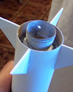The final step is to slip the nozzle around the protruding motor mount. This should be easy but mine was a tight fit. A little more sanding and it slipped on and was secured with white glue. Now, I think, the rocket is finished.